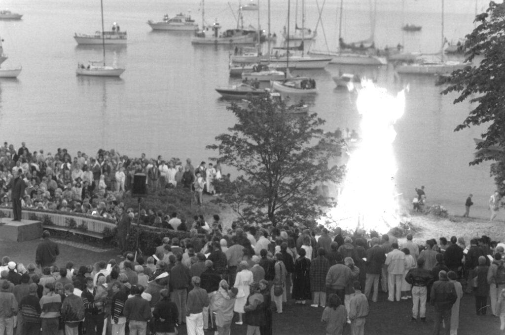 Tidspunktet var sankthansaften den 23. juni 1993, og de voksne lyttede til forfatteren Suzanne Brøgger, der holdt båltalen. 1993 var året, hvor hun udgav ”Transparence” og børnebogen ”Paradisets Mave”.
