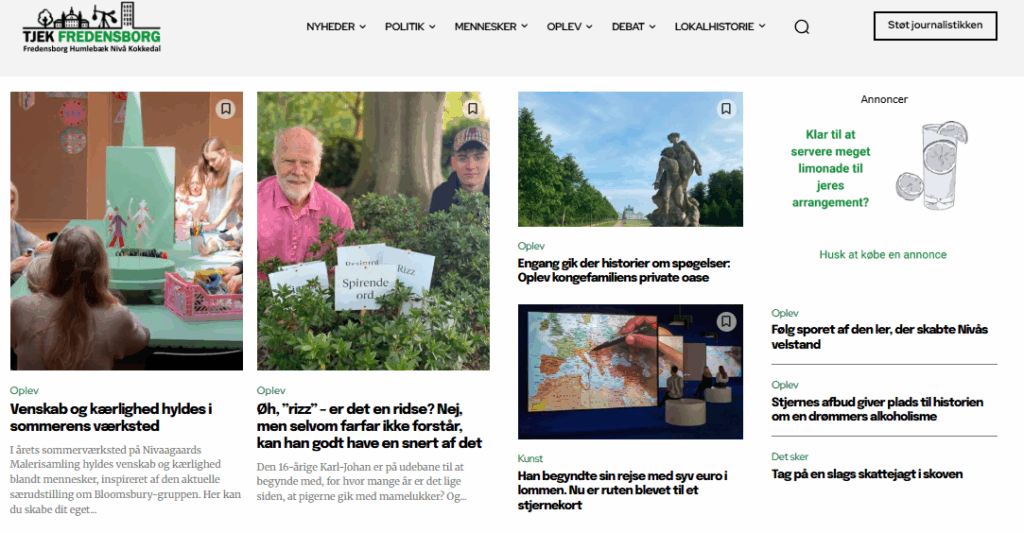 Dernæst går indtægterne fra annoncerne til at styrke den lokale journalistik og demokratiske samtale. Det er et andet valgt end at annoncere på sociale medier, hvor annonceindtægterne ikke geninvesteres i journalistik – og hvor ejerne ikke interesserer sig for, hvad der sker hos jer. Men det gør TjekFredensborg!