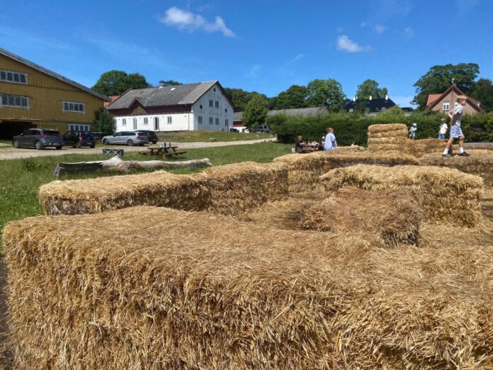 I mange år har halmballeborgen på Krogerup Avlsgård i Humlebæk været et populært udflugtsmål for børnefamilierne, og ideen er relativ enkelt. Store halmballer er samlet, så de danner en slags firkant, og halmballer er også placeret inde i firkanten, så børnene kan kravle, hoppe, springe og løber på halmballerne.
