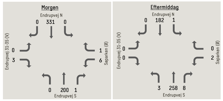 Analysen tager udgangspunkt i en trafiktælling foretaget på Endrupvej syd for Endrupskolen i perioden fra den 8. april til den 18. april sidste år. Tællingen viste, at der kører 4.153 biler i døgnet på Endrupvej, og de 531 biler kører i spidsbelastningen mellem 7.00 og 8.00. 440 biler kører om eftermiddagen mellem 15.00 og 16.00.
