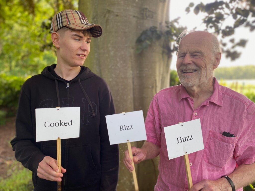 De spirende ord skal nemlig bruges præcist og i den helt rette sammenhæng, hvilket Karl-Johan også gør, da farfar spørger til betydningen af ordet ”huzz”. Barnebarnet skal nemlig på Roskilde i år, og i ugen op til festivalen fik han en besked sendt i en gruppe af sine nærmeste venner: