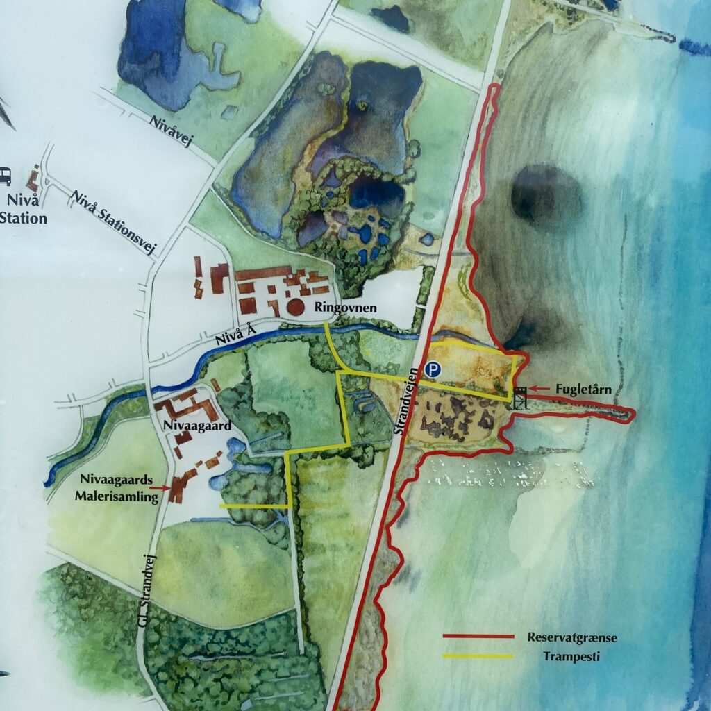 - De fysiske steder kan knytte sig til mange emner, hvad enten det er kunst, arkitektur eller udeliv. Her er vi ude i naturen i fuglereservatet Nivå Bugt Strandenge, der ligger lige syd for Nivå Havn. Der er fri adgang til området, der opleves bedst med en god kikkert.