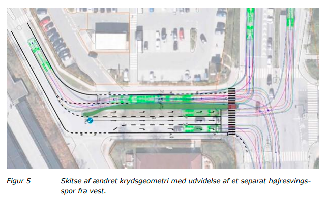 “Ved realisering af Center Nord og udvidelse med et separat højresvingsspor fra Egevangen i 2030 samt ændring i grøntidsfordelingen opnås en mere jævn fordeling af forsinkelserne i krydset, hvilket giver acceptable forsinkelsesværdier for alle trafikstrømme i krydset”, lyder en af konklusionerne, lavet af Cowi.