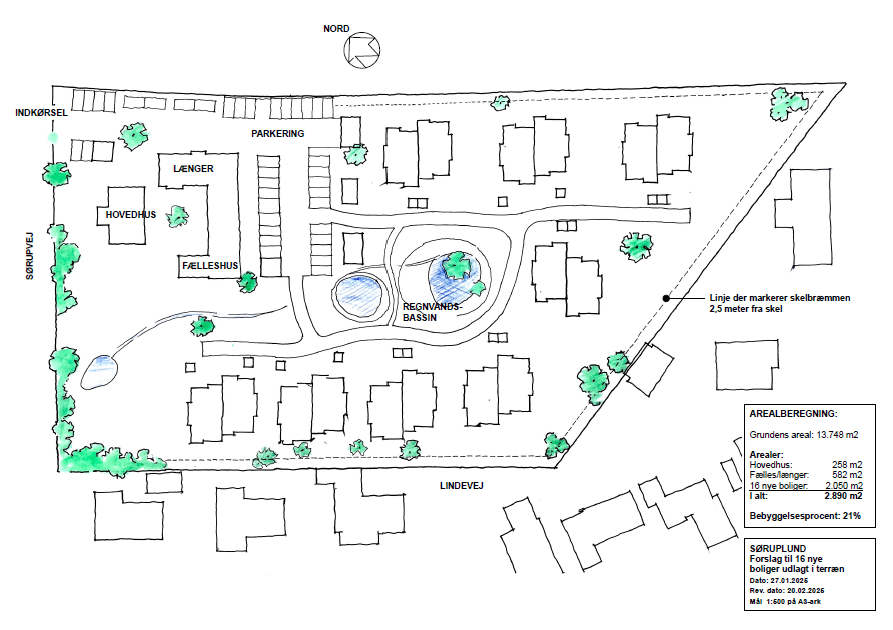 I en have anlagt med LAR-løsninger, vild med vilje-tiltag og en lav bebyggelsesprocent kan området som seniorbofællesskab blive en gevinst for Sørup og forme en naturlig afgrænsning af Sørup som en hyggelig, men også tidssvarende landsby med mange muligheder for at deltage i fællesskaber.