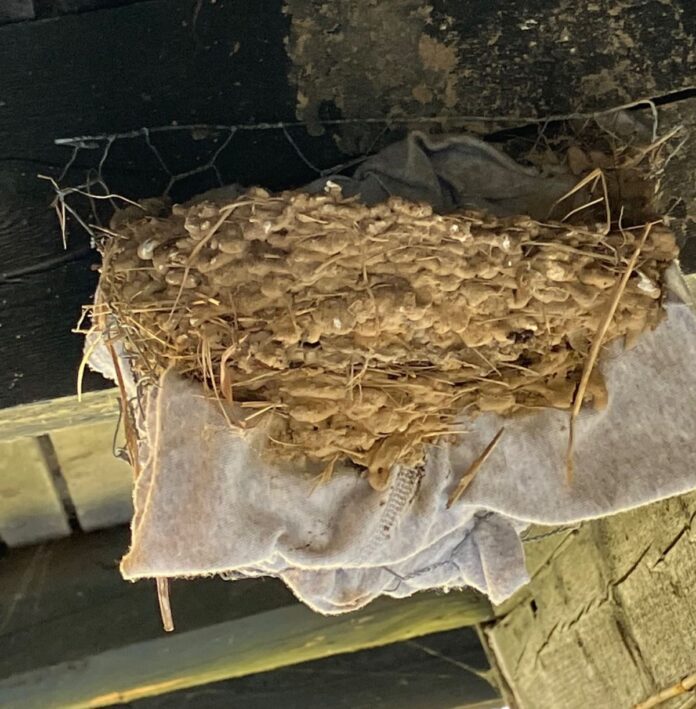 ”De gamle fugle mente dog ikke, at reden var helt god nok og byggede derfor forkanten op, så den kom til at ligne en ‘rigtig’ svalerede lidt mere. Det kan ses på billedet!”