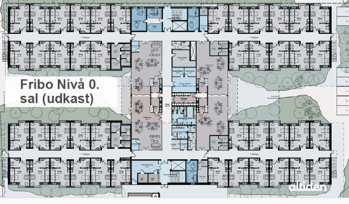 Plejecentret får eget køkken, og beboerne får indflydelse på den mad, der skal laves – blot den lever op til de ernæringsmæssige behov, og derfor er udgangspunktet Altidens eget madkoncept, der hedder ”Mad som hjemme”-konceptet. Der vil være en vinter- og sommermenu, hverdagsmad og mad til weekender og højtider, og duften af mad skulle gerne nå helt ud på afdelingerne på Fribo Nivå, lover Altiden, der også vil have fokus på aktiviteter og tilknytte en bus til plejecentret, så beboerne kan komme på tur.