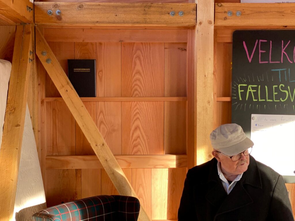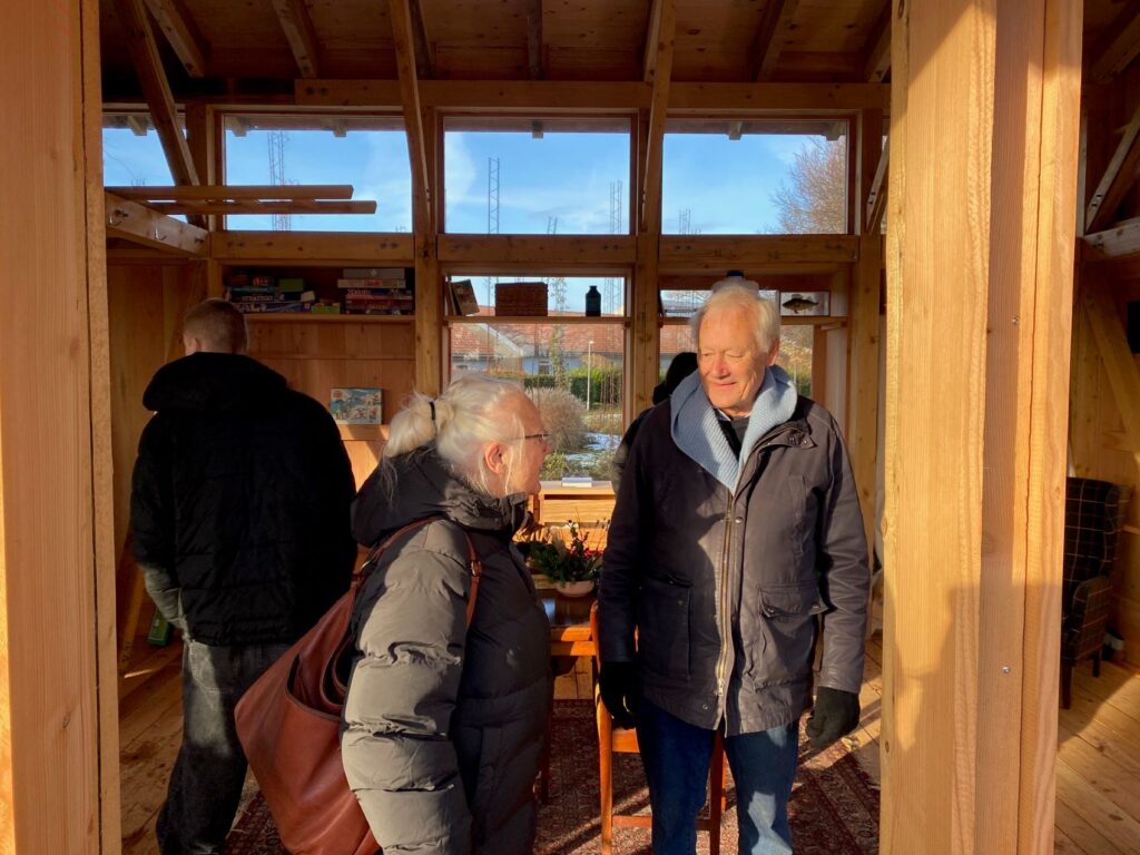 – Vi kan ikke sådan udpege, hvor træværket fra lejligheden er brugt, men hvis du kigger op på lægterne, er en del af lægterne fra minkfarmene, sagde Henrik Bisp og forklarede, at projektet hos Realdania sørger for at afrense træværket fra de nedrevne bygninger og forberede det til at blive genbrugt.