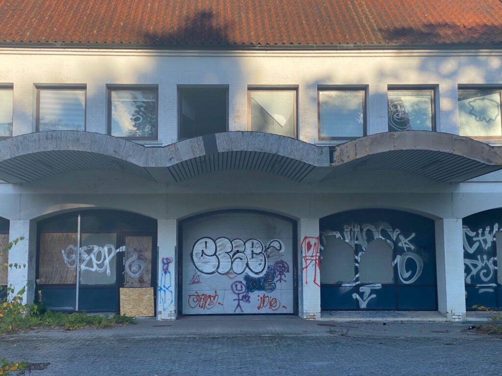 I de seneste mange år har bygningen været en graffitiplaget øjebæ, hvor det ser ud til, at byens unge skaffer sig adgang via vinduerne på 1. sal.