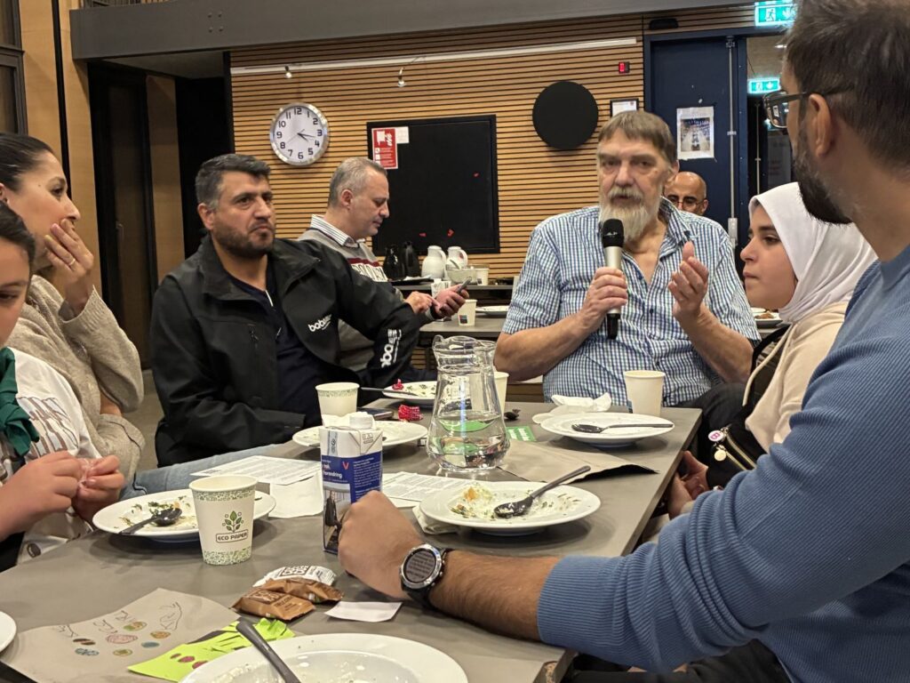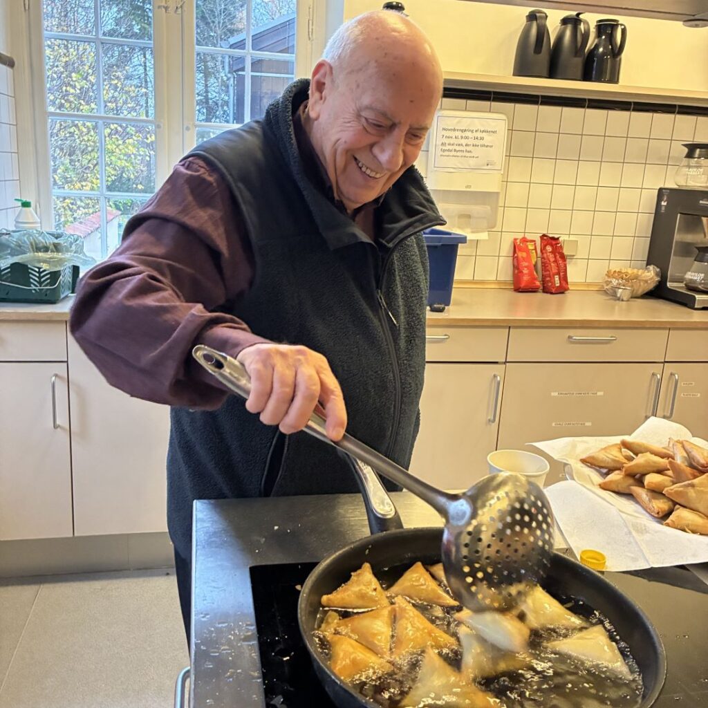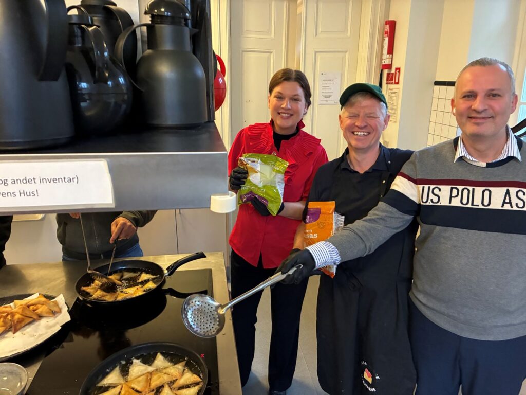 Ved forskellige madstationer blev der snittet, rørt og stegt, mens samtalerne flød frit. René Nørbjerg (C) og Louise Mehnke (S) stod for at stege sprøde samosas, mens en anden gruppe tilberedte tabouleh og tzatziki.