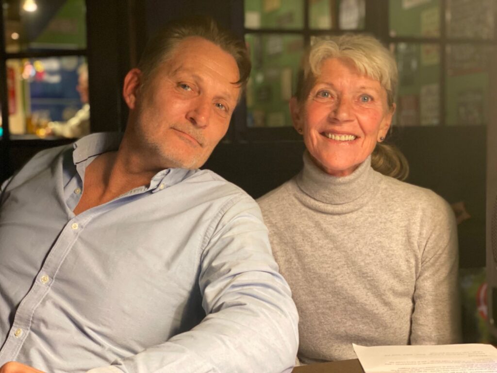 Jesper Grundsøe de La Motte fra SF og borgmesteren ses her i forberedelserne op til debatten. Om der stod leverpostejspolitik i Jespers notater vides ikke, men han sagde senere ordet, da han opfordrede til at stemme på kandidater med energi og stærke visioner. Foto: Steffen Slot