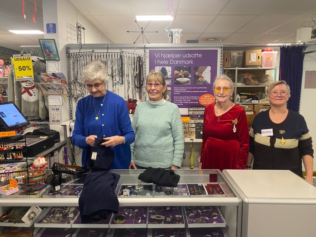 – Vi har udsalg. Det kan kunderne virkelig godt lide. Men det er ikke julegaver, som de køber. Julepynt og kagedåser har solgt godt her i december. Og tøj naturligvis, fortæller Liselotte Andreasen, der er butiksansvarlig i Kirkens Korshærs butik i Fredensborg.