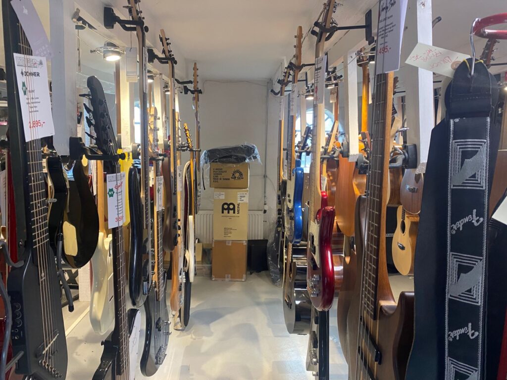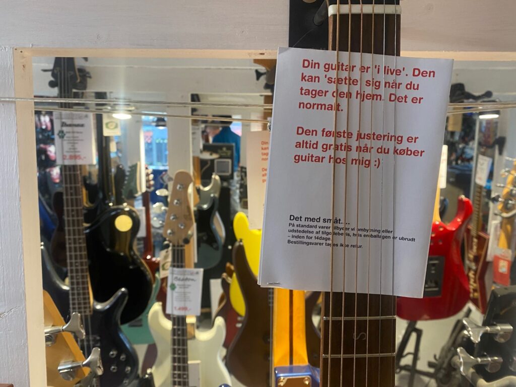 – Den dyreste guitar, som jeg har lige nu, koster 28.000 kroner. Guitaren er fra 70’erne, og dengang var håndværket bedre og det samme var materialerne, træet, og mange af guitarerne fra dengang er blevet vintage, fortæller Gregers Larsens hvis prisskilte viser, at man også kan få instrumenter i prislejet omkring 1000 kroner.