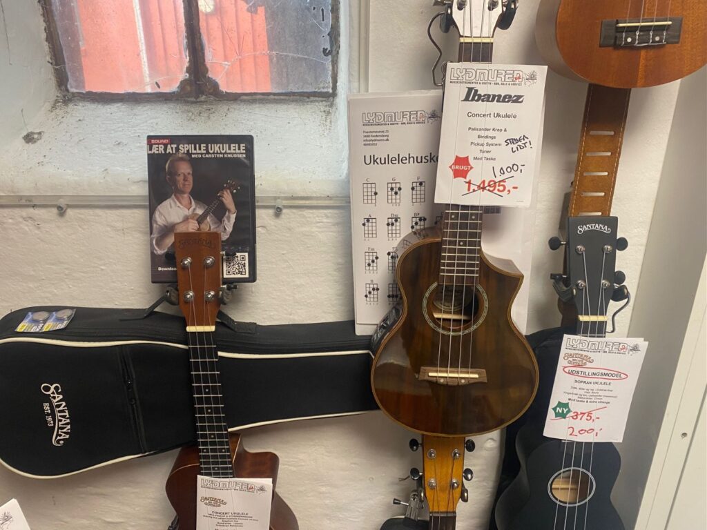 I billedserien herunder kan i se stemningsbilleder fra forretningen. Måske en af jer har brug for Carsten Knudsens cd om at spille ukulele, forhåbentlig bedre end han gjorde i The Julekalender?