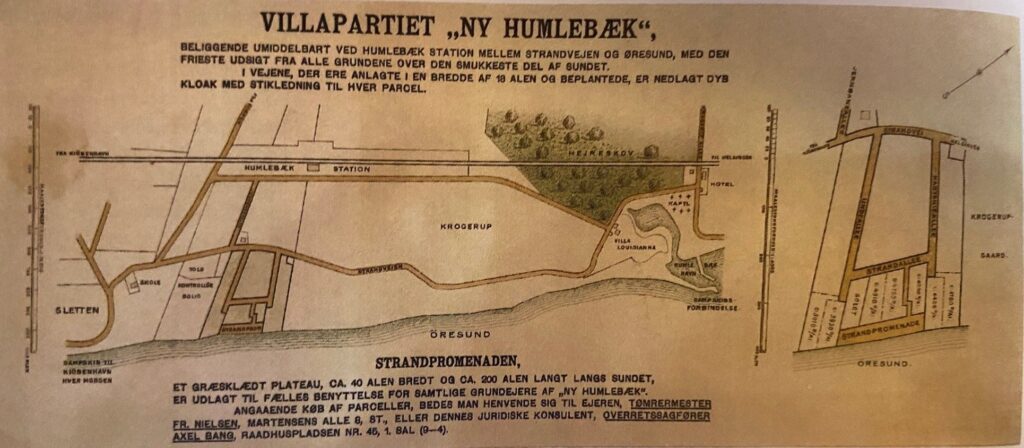 ”Hvis man en dag i sommeren 1945 stod af toget på Humlebæk Station ved den flotte stationsbygning fra 1897 og kiggede sig omkring mod nord og øst, så man stort set kun marker og skove. Der var dog også den sparsomt trafikerede nye strandvej.”
