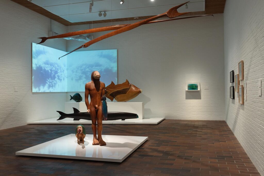 Jeg har på museet stille bevæget mig rundt mellem hendes skulpturer og tegninger med en fornemmelse af at være i en verden under havoverfladen. På samme tid en tyst, dunkel og farverig oplevelse, enkelte gange også med et smil i mundvigene.