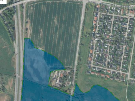 Arealet, der udgør en stor del af den øvre blå markering på dette kort, har samfundsmæssig værdi som et lavbundsareal og har aldrig tidligere været dyrket intensivt, vurderer politikerne og forvaltningen. Læs mere