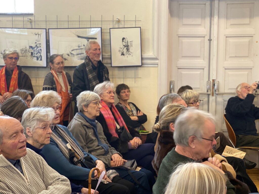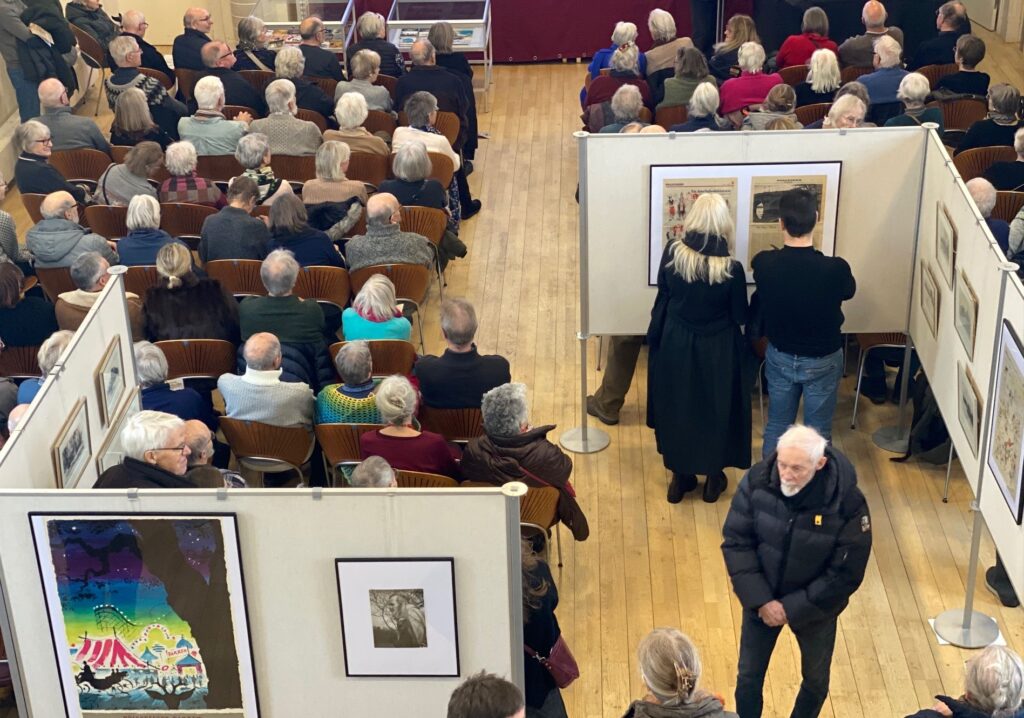 De havde forventet det halve, håbet på lidt mere, men gæsterne blev ved med at strømme ind til lørdagens fernisering på udstillingen “Des Asmussen – et liv i streg”.