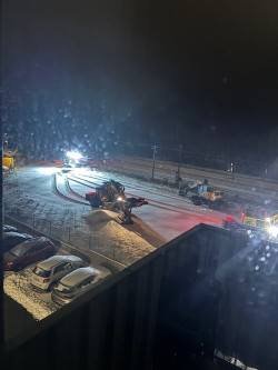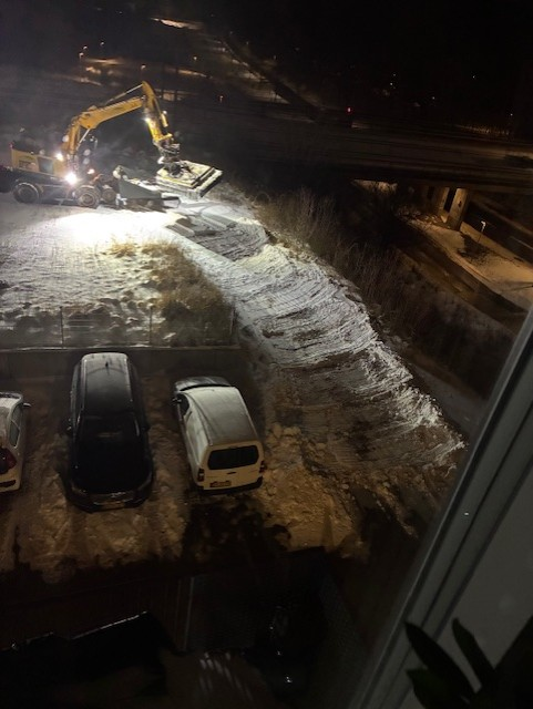 Natten til tirsdag den 10. februar blev der foretaget arbejde på togskinnerne, beretter Knud Moltsen og fortæller, at maskinerne kom tilbage ved 02.45-tiden, og at der derefter blev ryddet sne på arealet, hvilket tog ganske lang tid. Natten til onsdag den 11. februar var der igen larm efter midnat.