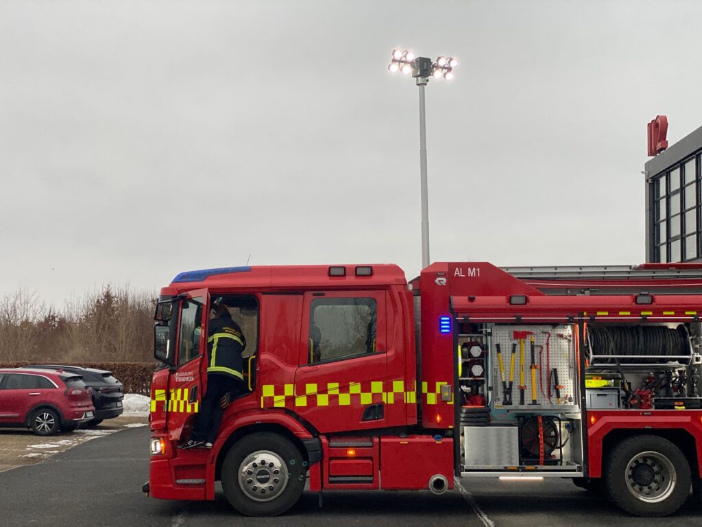 En teleskopmast kan desuden skydes op i 8-10 meters højde og give et godt lys på ulykkesstedet, hvilket også har værdi.