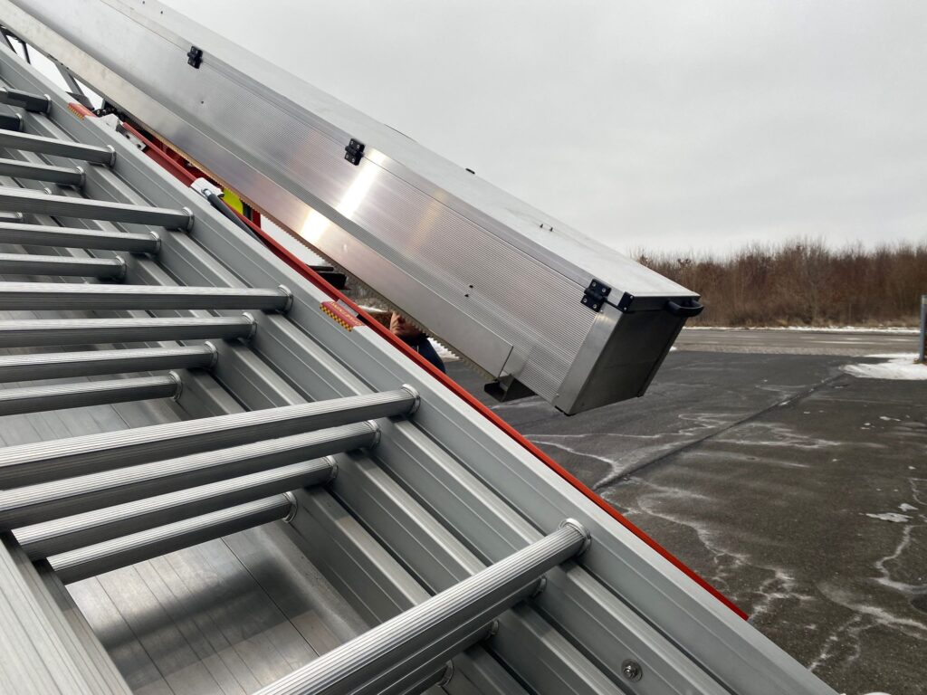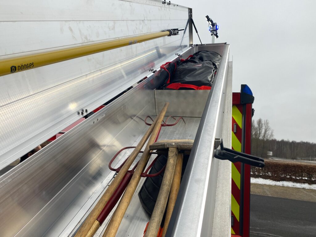 På toppen af sprøjten er der også lavet forbedringer. Førhen skulle brandfolkene kravle ad stiger op på taget for at løsne kasser med udstyr eller de 14 meter lange stiger, der ofte tages i brug på et brandsted.