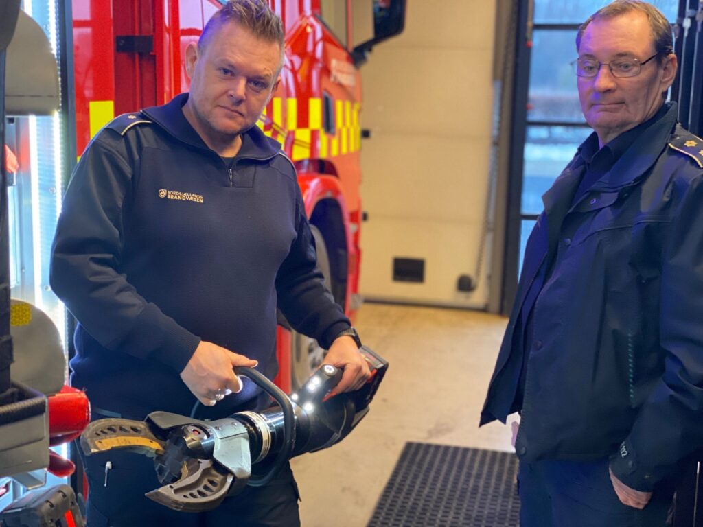 Op mod tyve klip på en opladning, fortæller Dion Kofoed Hansen, stationsmester på brandstationen i Allerød. Før var det de hydrauliske slanger, der drev udstyret.