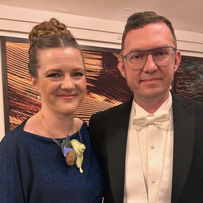 Hvis man fredag aften lagde mærke til en særlig smuk kvinde, der satte sig ved et bord på Restaurant Sletten ledsaget af en mand i kjole og hvidt – ja, så var det ingen havfrue fra Øresund, selvom hun havde et smykke med rav, plastik og et stykke af en dåse om halsen.