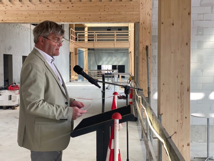 Men bortset fra det drilske spørgsmål var det en festens dag med glæde over et byggeri, der endelig er kommet så langt, at rejsegildet kunne fejres.